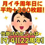 9月5日(火)|エスパス渋谷新館|月イチ周年日に大量投下!全台系・1/2系・末尾仕掛けで平均+300枚超の爆出し!今回も渋谷ななこから仕掛けのヒントもあり!