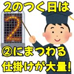 貴重な2のつく日の基本まとめ! 「2日が月イチのチャンス日」、「22日がゾロ目の日」なので、純粋に2のつく日というのは毎月12日だけ! この日は2台並びを中心に、機種名に2のつく機種の全台系や1/2系 ...