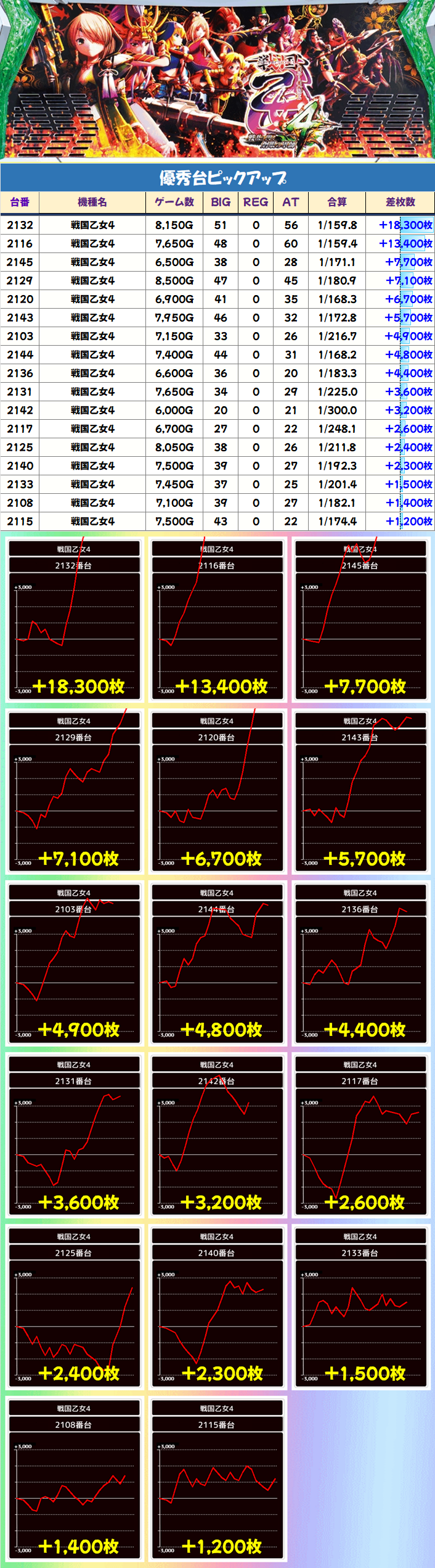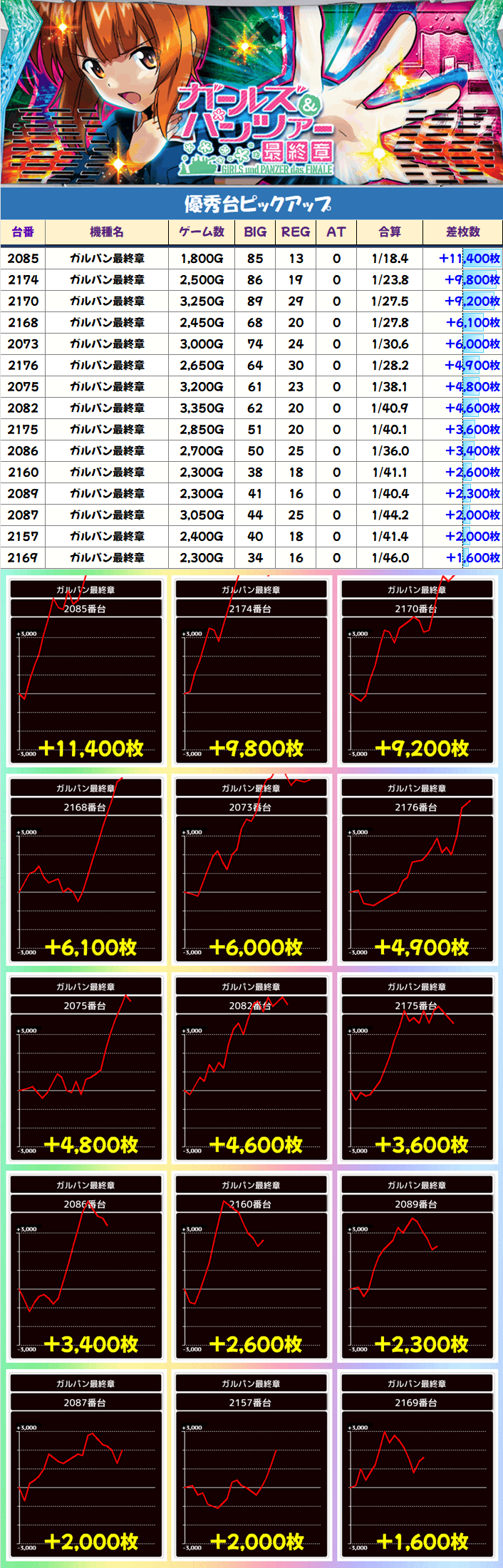 ✅AKIBA神3の「戦国乙女4」「ガルパン最終章」「グランベルム」は優秀台が多数