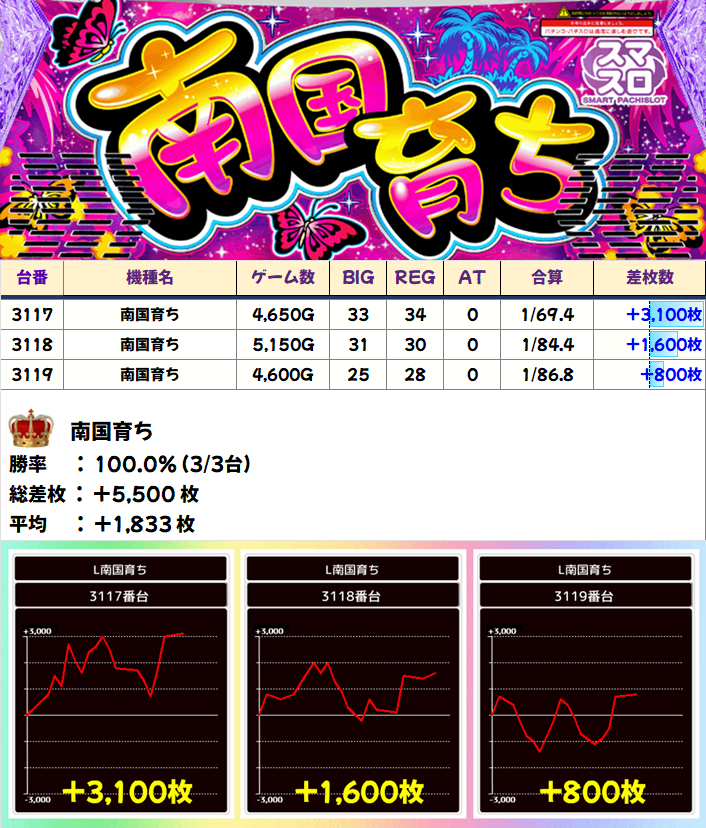 南国育ち(3/3台+)⏩Ave+1,833枚