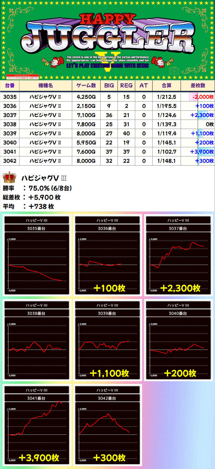 ハピジャグV Ⅲ(6/8台+)⏩Ave+738枚