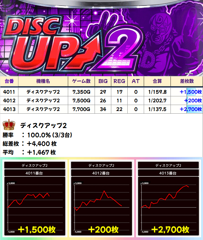 ディスクアップ2(3/3台+)⏩Ave+1,467枚