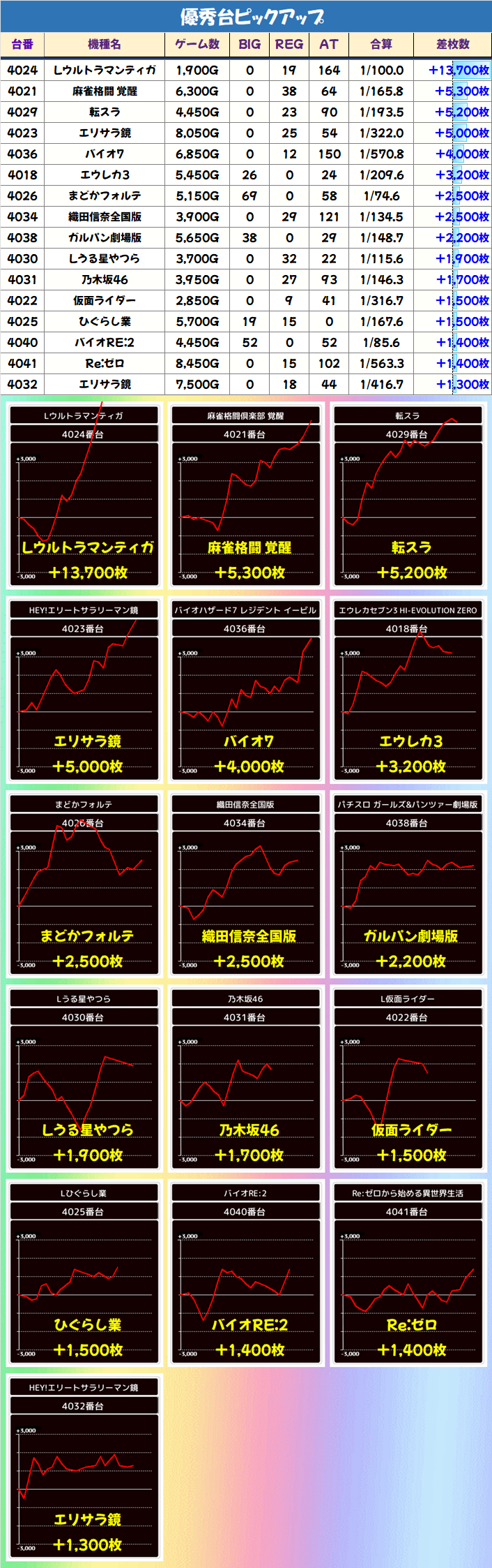 +5000枚以上の大幅プラス台が出現