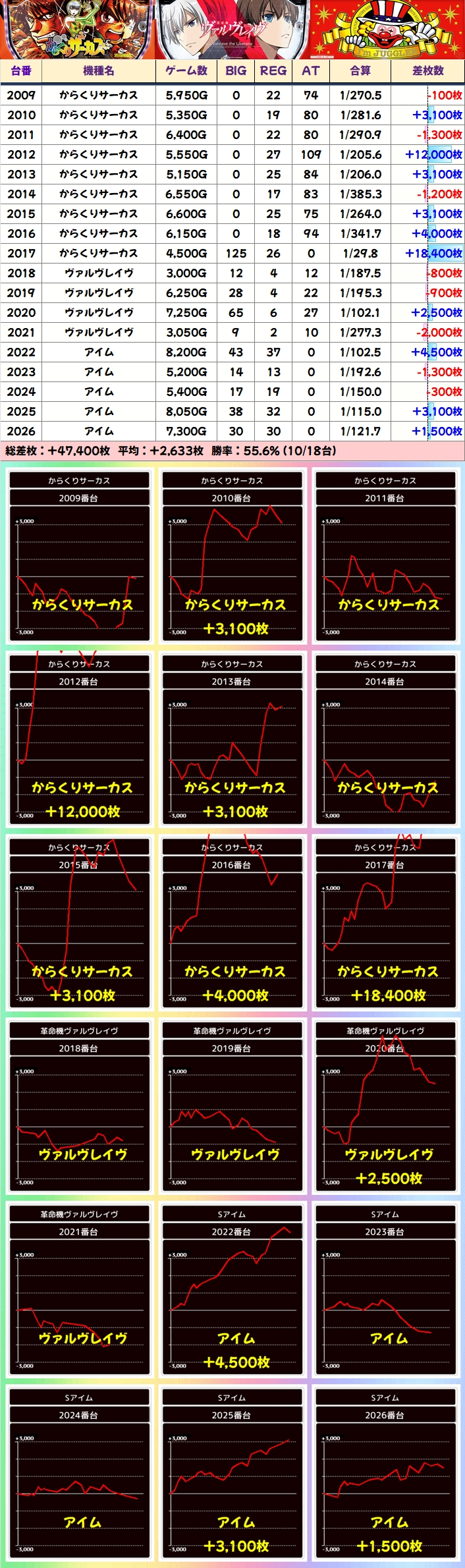 そんな、大量のお宝台に期待できる月イチ周年日ですが、今回も安定のプラス差枚を記録!