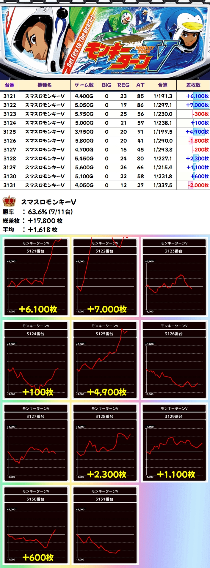 【全台系濃厚】モンキーターンV(11台)平均+1618枚