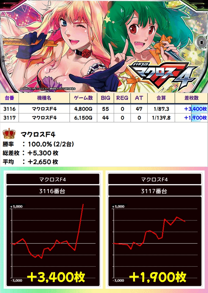 【全台系濃厚】マクロスF4(2台)平均+2650枚