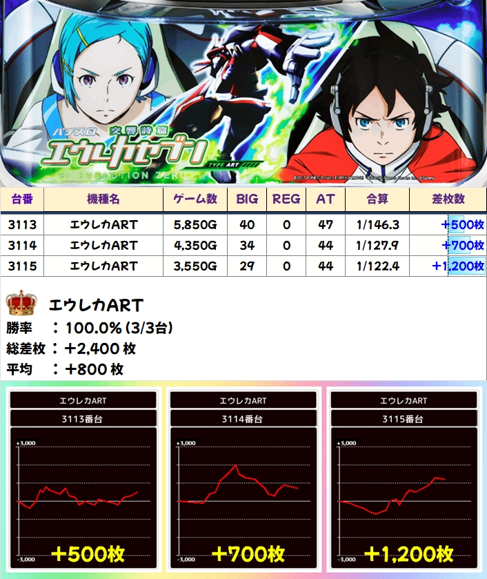 【全台系濃厚】エウレカART(4台)平均+800枚