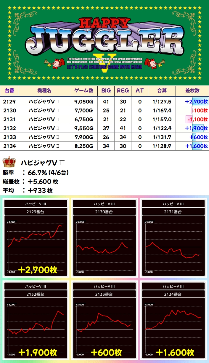 【全台系濃厚】ハピジャグ(6台)平均+933枚