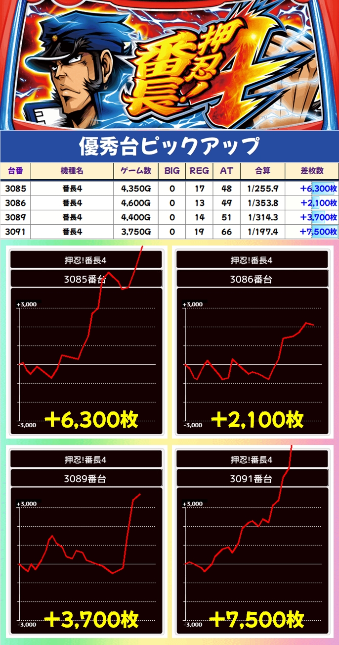 また、6月から毎日機種になった番長4も高配分の結果になっていました。