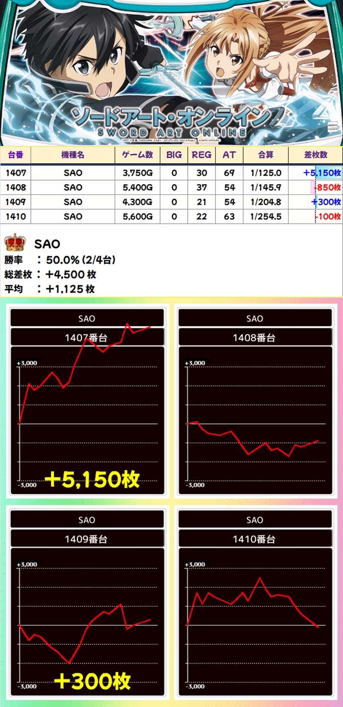 ポストにヒントがあった「SAO」は平均+1000枚超を達成!