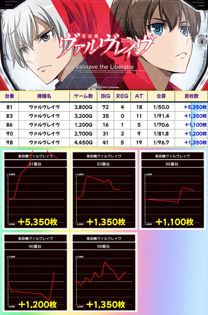 「ヴァルヴレイヴ」は今回+5000枚超が1台のみと不発気味の結果に