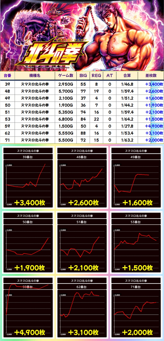 「スマスロ北斗」は10台近くが+1000枚超!