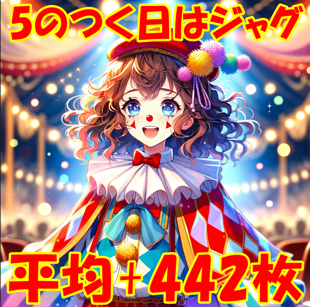 末尾⑤のジャグの仕掛けは、5/5、5/15、5/25、6/5、6/15、6/25に続いて7連続で出現中であります! 最近の5のつく日は末尾⑤のジャグに鉄板で仕掛けがあるようなので、こちらはしっかり覚えておきたいですね。
