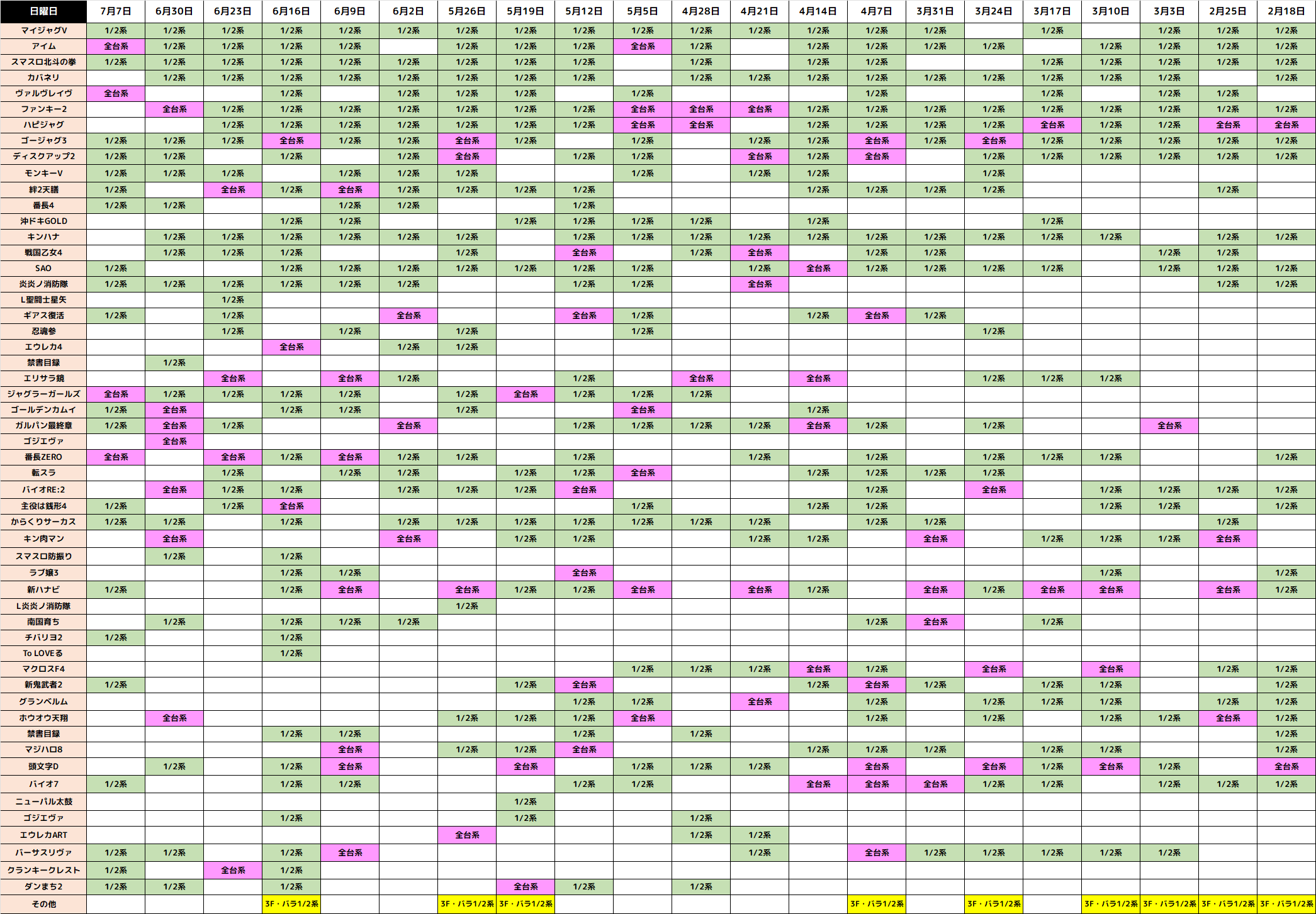 スマスロは前述した全台系濃厚に続いて1/2系濃厚も10機種以上出現!