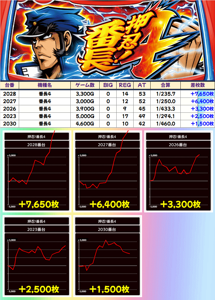 【1/2系濃厚】番長4(5/10台+)平均+1,245枚