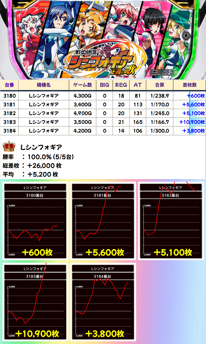 Lシンフォギア(5/5台+)⏩Ave+5,200枚