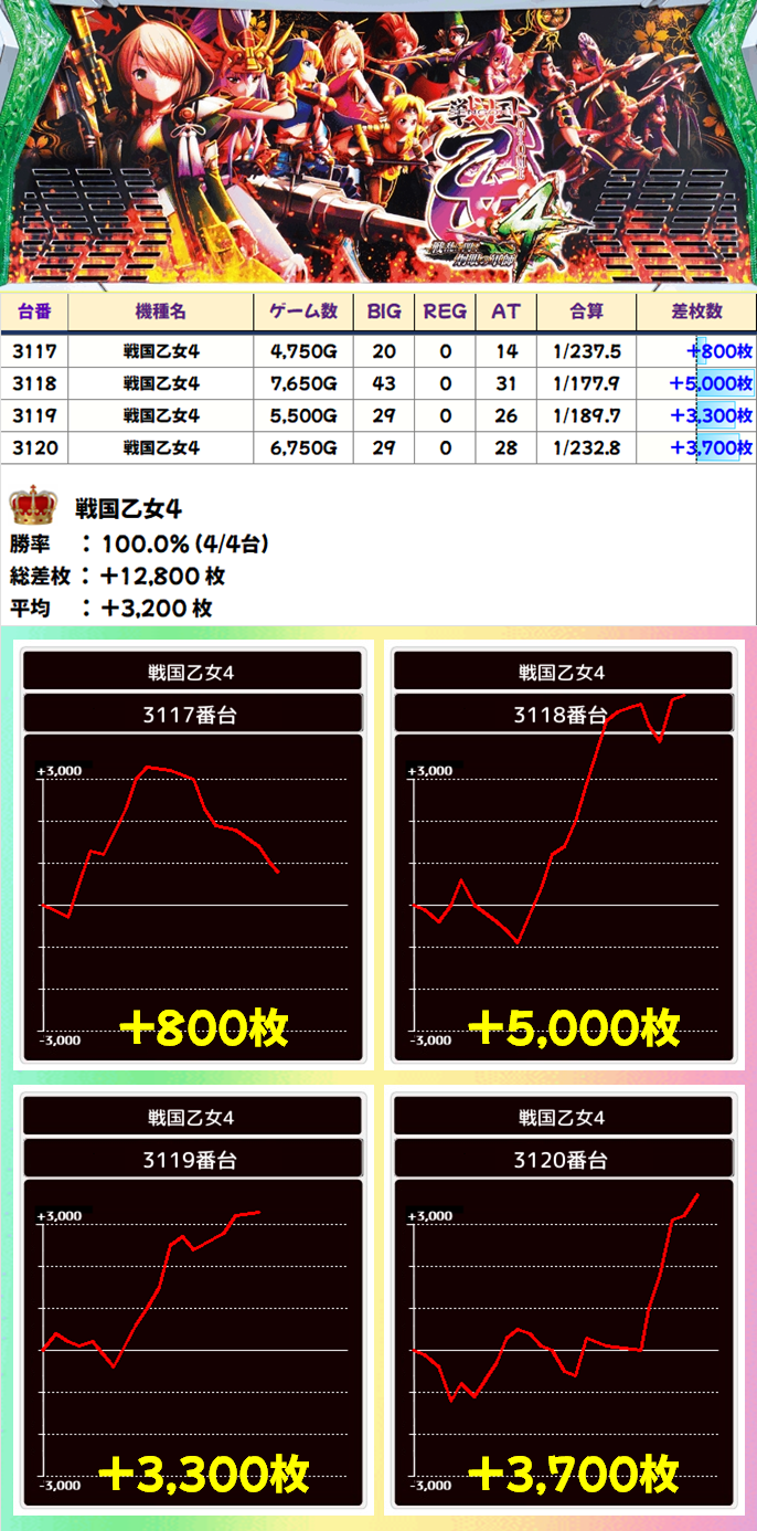 戦国乙女4(4/4台+)⏩Ave+3,200枚