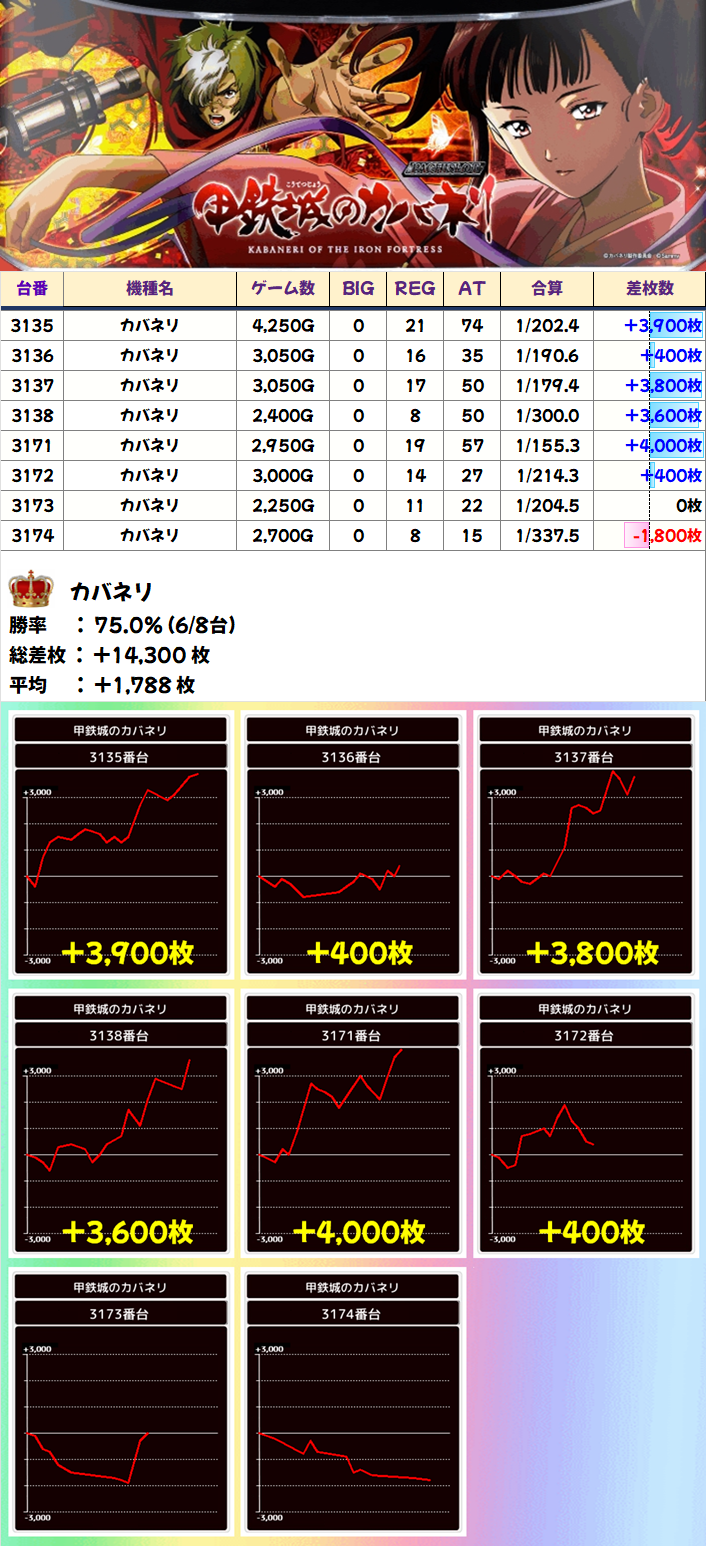 ✅総差枚 +74,450枚