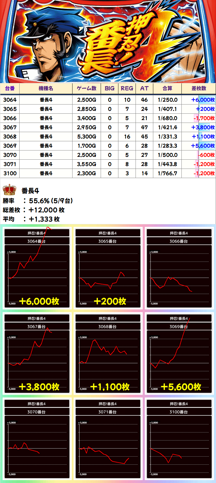番長4(5/9台+)⏩Ave+1,333枚