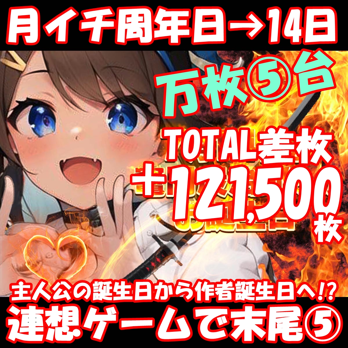 万枚出ている台は末尾⑤がないので、末尾⑤のデータは全体的に高配分だったことを証明するランキングにもなっていますね。6/14は末尾④仕掛けもあったので、次の8/14も末尾系は意識したほうが良さそうです。
