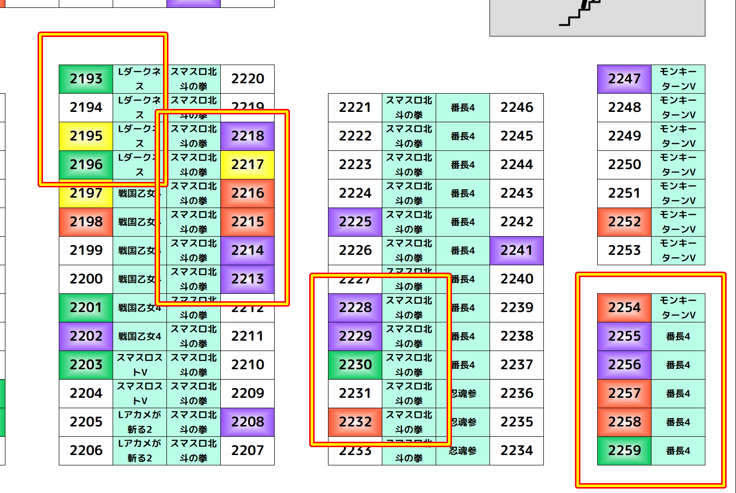 こちらも並びと思わしき箇所を複数投入してきたと思われます。それ以外にも単品優秀台が多く、確実に1/2系の高配分でしょう!