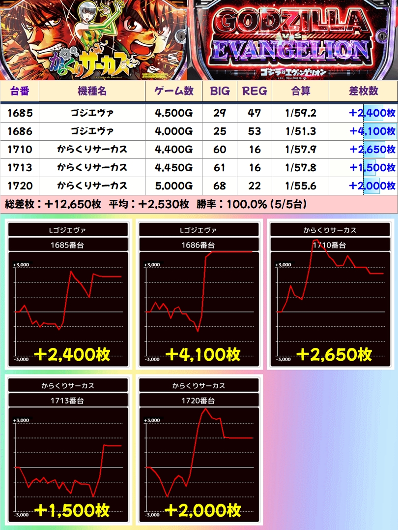 【単品濃厚機種②】からくりサーカス・ゴジエヴァ(計5台)|平均:+2530枚