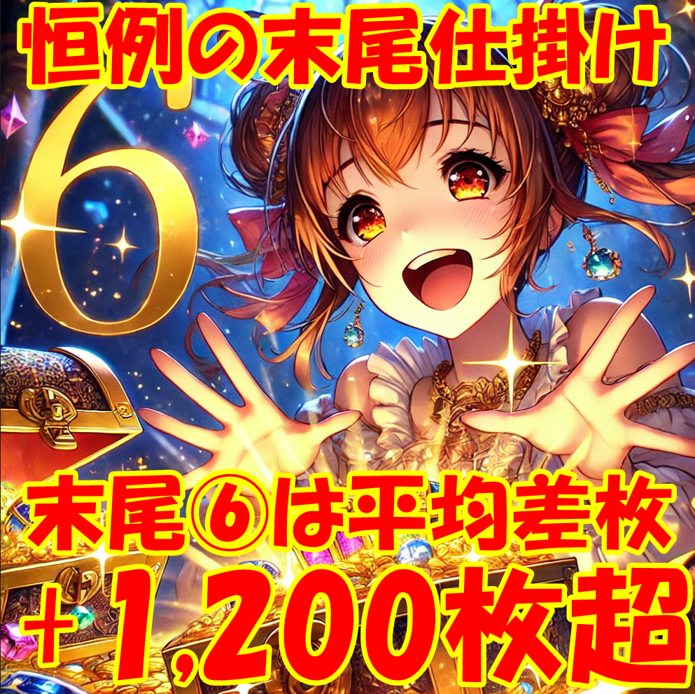 不発の台もありましたが、勝率から考えるに高配分であったことは間違いなし! 今回の6のつく日も、末尾⑥の台は平均で+1,241枚と優秀な結果となりました。