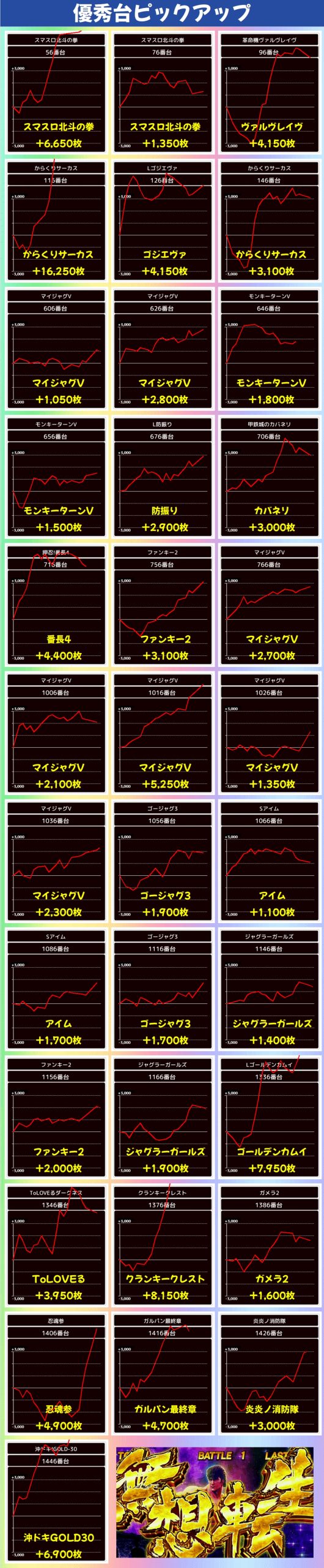 いずれの機種からも優秀な出玉が見受けられたので、ピックアップを確認してみましょう。