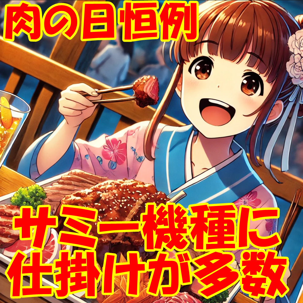 🔔サミー機種や肉にまつわる機種が狙い目‼🎯肉の日はサミー機種のお宝台投入率がアップ‼