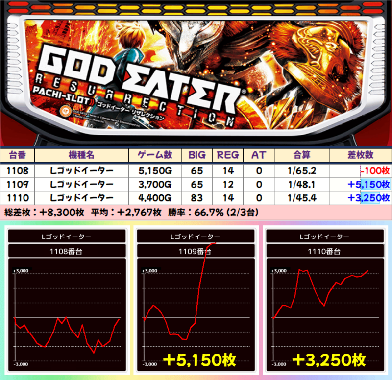 【高配分】Lゴッドイーター(2/3台)☆平均差枚+2767枚☆