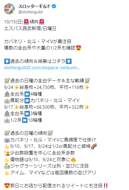 今回はエスパス西武新宿で傾向的に期待できる日曜日の結果をレポート!