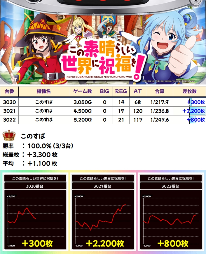 【全台系】このすば(3台):平均+1100枚