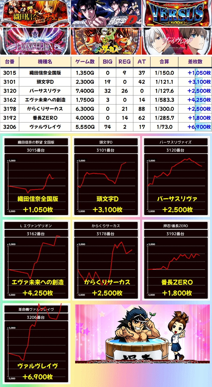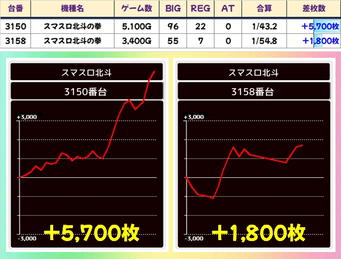 並びのマイナスの台は、どちらも打ち込み不足が要因なので、もう少し稼働があれば更なる出玉に期待できたのかなと。