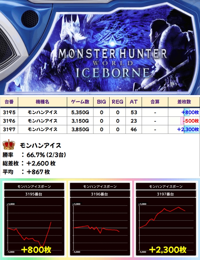 【全台系】モンハンアイス(3台):平均+867枚