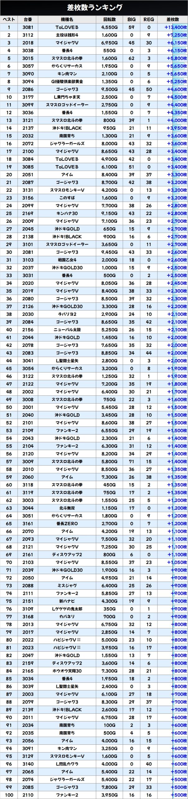 差枚数ランキング&シマ図をチェック