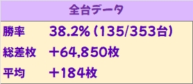 台平均+184枚の優秀成績で、優秀機種や並びもしっかりと確認できました。全体では70台が+1000枚以上を獲得し、ToLOVEるからは万枚超も確認できました。