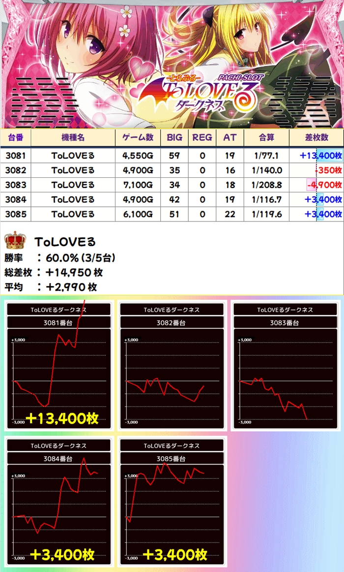 【全台系濃厚】ToLOVEる(5台):平均+2990枚