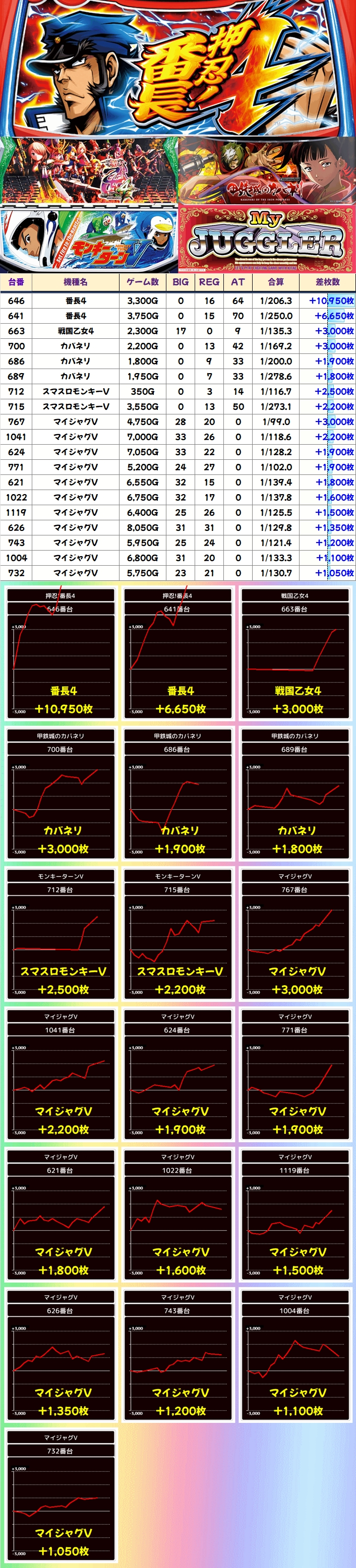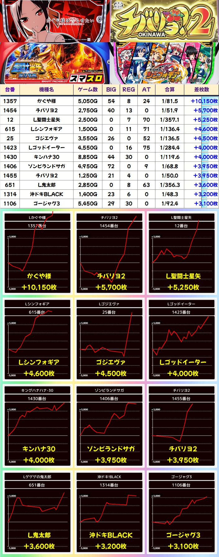 他の機種にも+3000枚超、+2000枚超の台がしっかりありました!