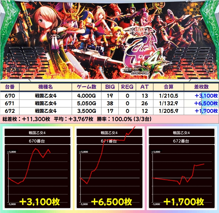 【3台並び】戦国乙女4(670-672番台)