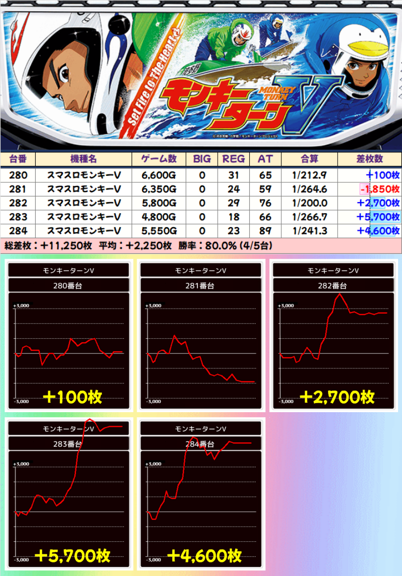 【列全】モンキーターンV(280-284番台)☆平均差枚+2250枚☆