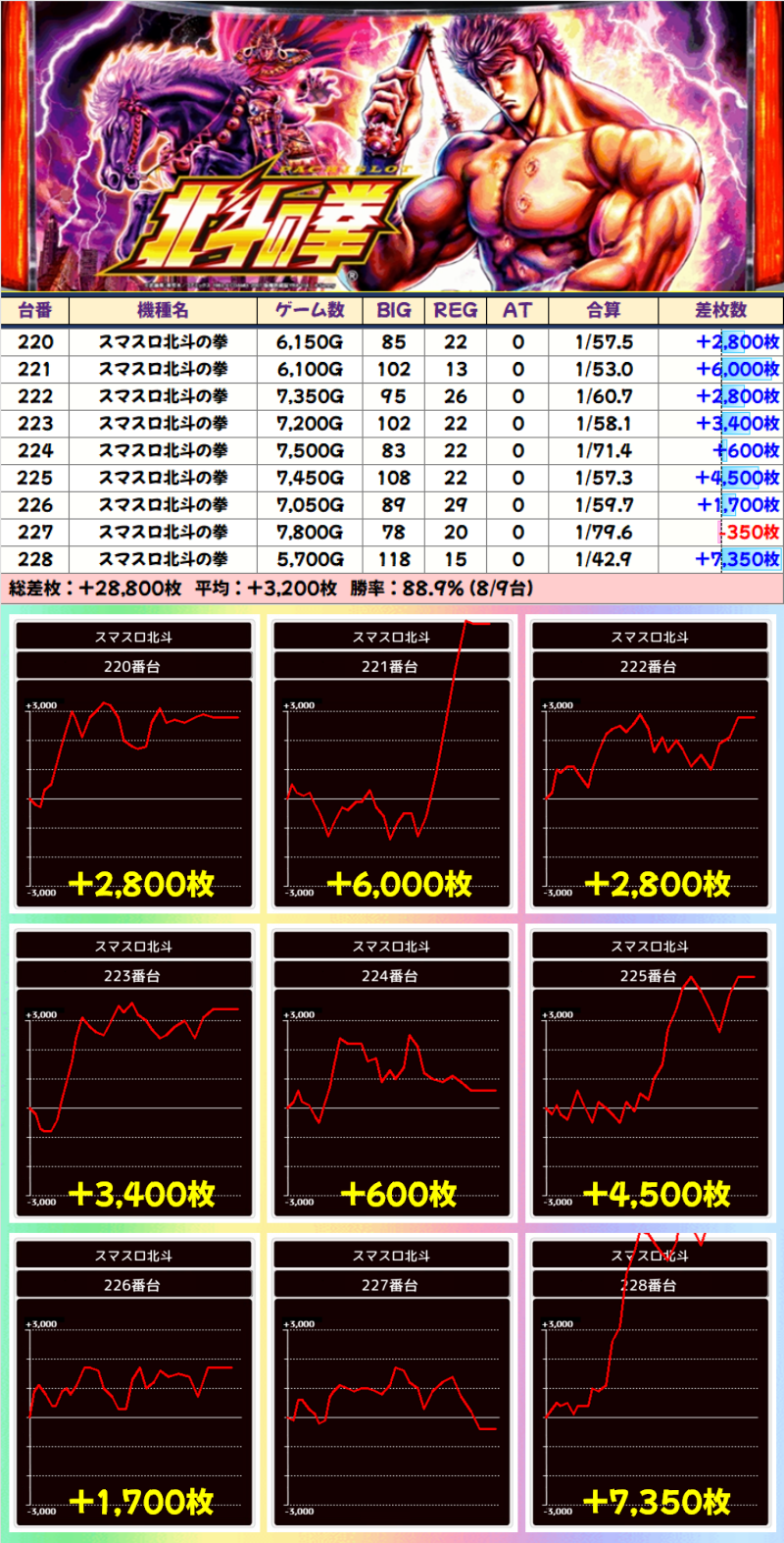 【9台並び】スマスロ北斗の拳(220-228番台)☆平均差枚+3200枚☆