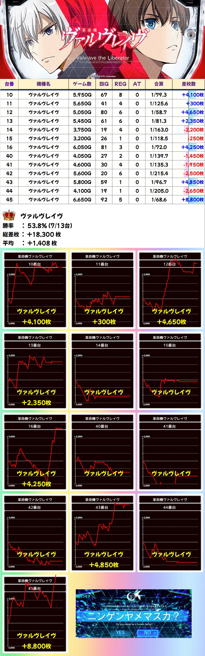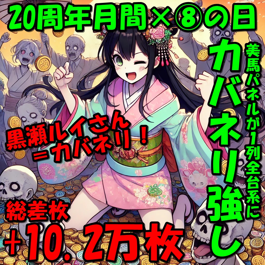 今回の結果は総差枚約+10.2万枚!やはり20周年月間は一切の妥協ナシ!