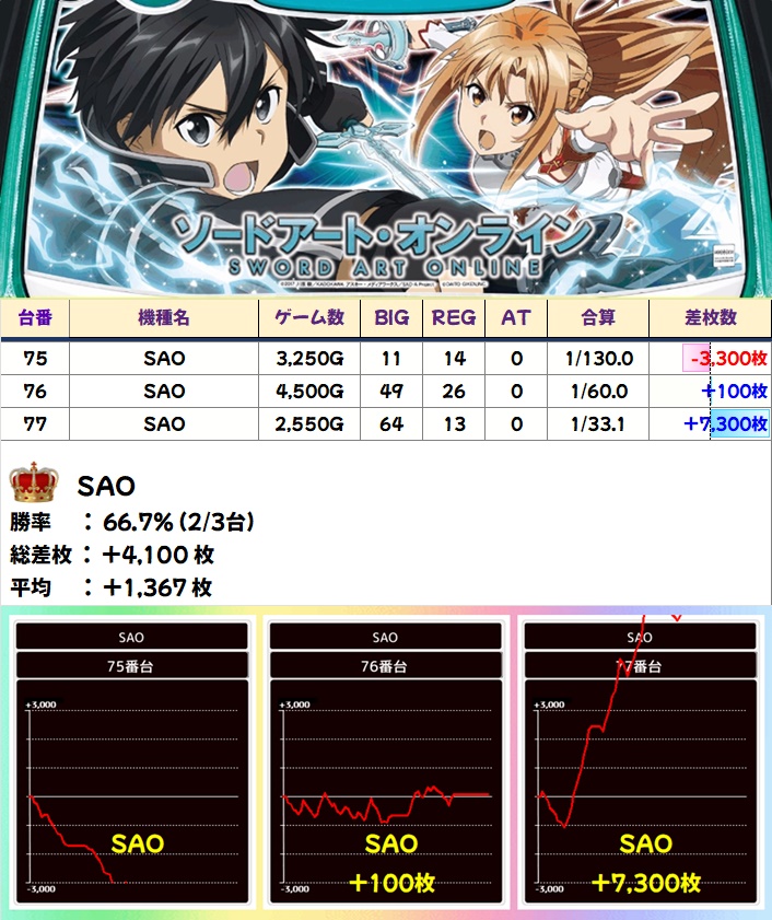 🌈SAO(3台)【平均+1367枚】