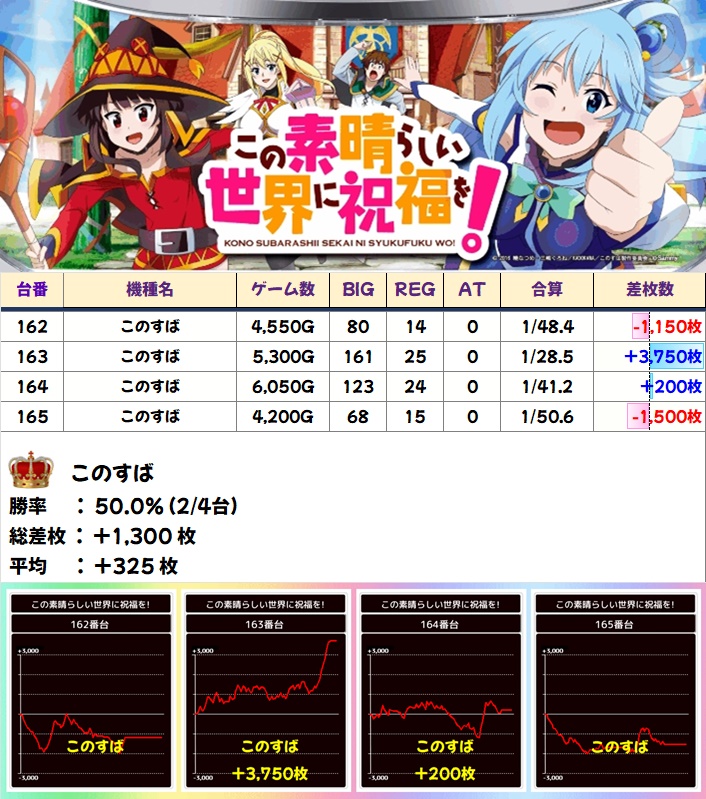 🌈このすば(4台)【平均+325枚】
