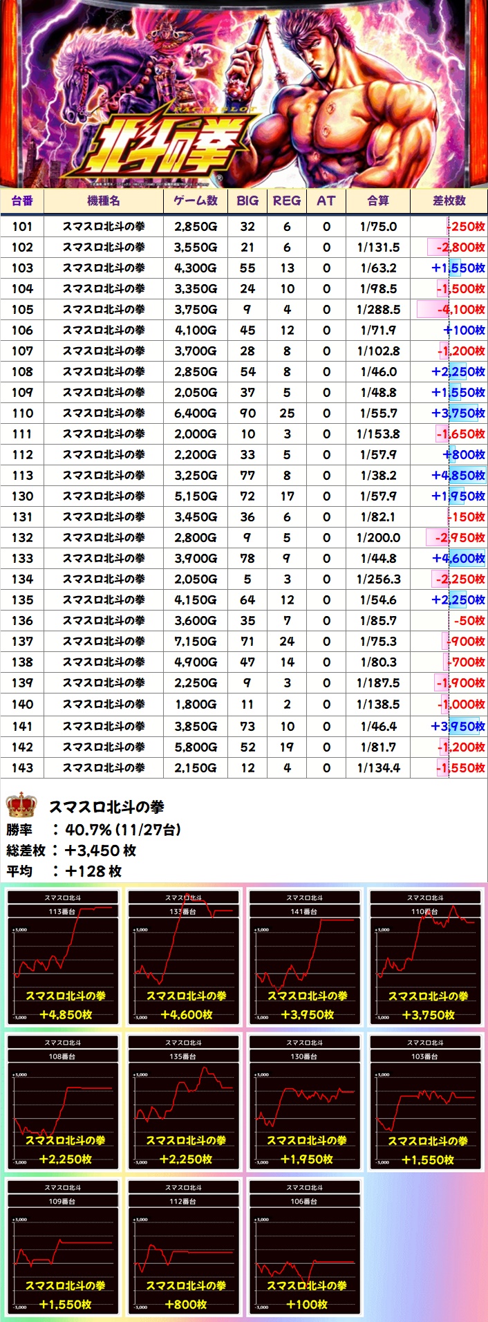 🌈スマスロ北斗の拳(27台)【平均+128枚】