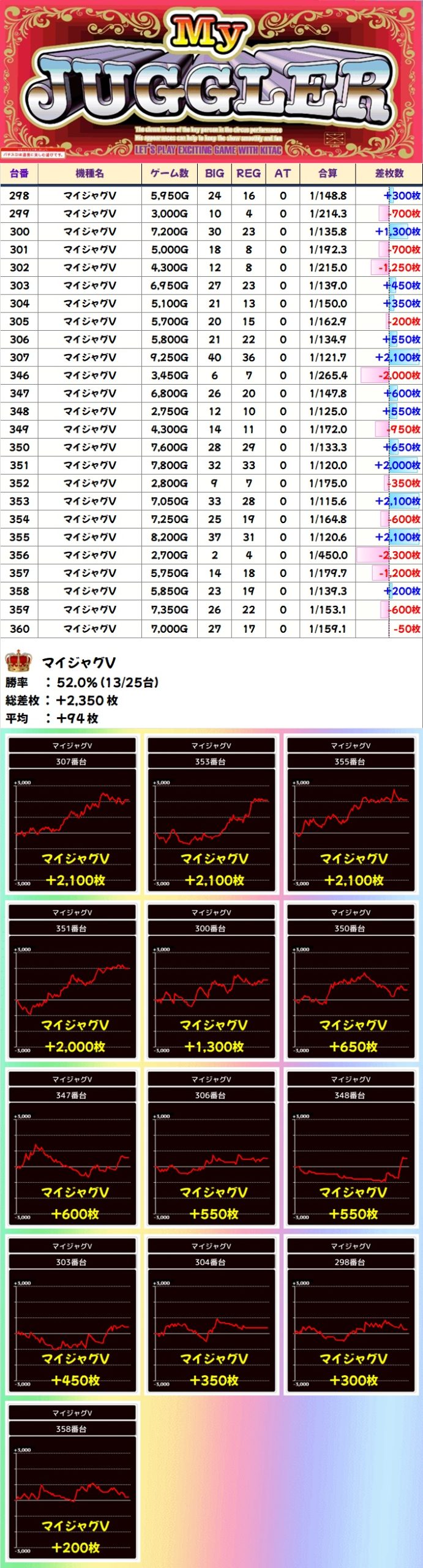 🌈マイジャグV(25台)【平均+94枚】
