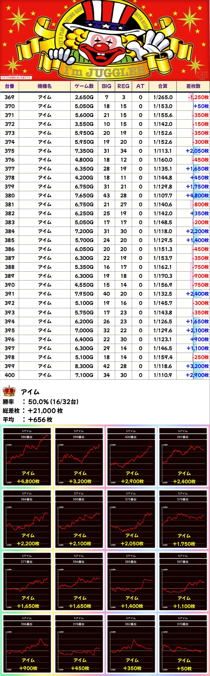 🌈アイム(32台)【平均+656枚】
