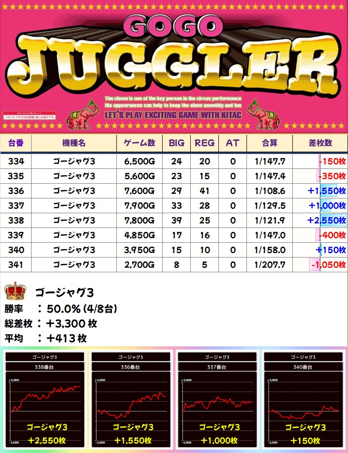 🌈ゴージャグ3(8台)【平均+413枚】