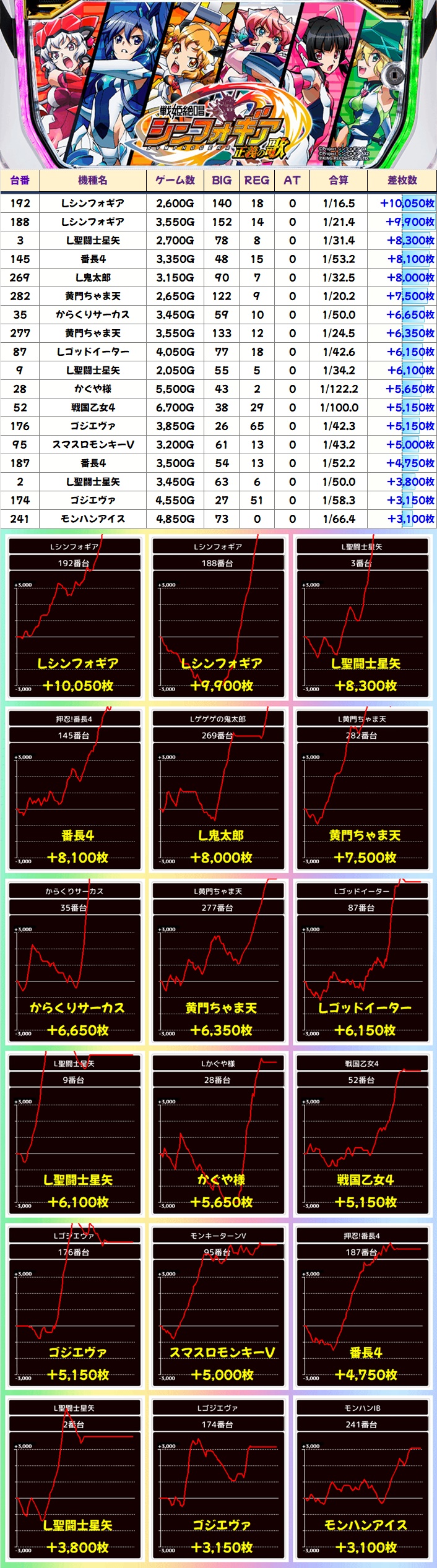 モチロン単品優秀台は多数アリ!Lシンフォギアからは万枚オーバー台もアリ!