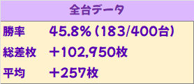 今回の総差枚は約+10.2万枚&台平均+257枚と好結果に!やはり20周年月間の9月は超期待できる!